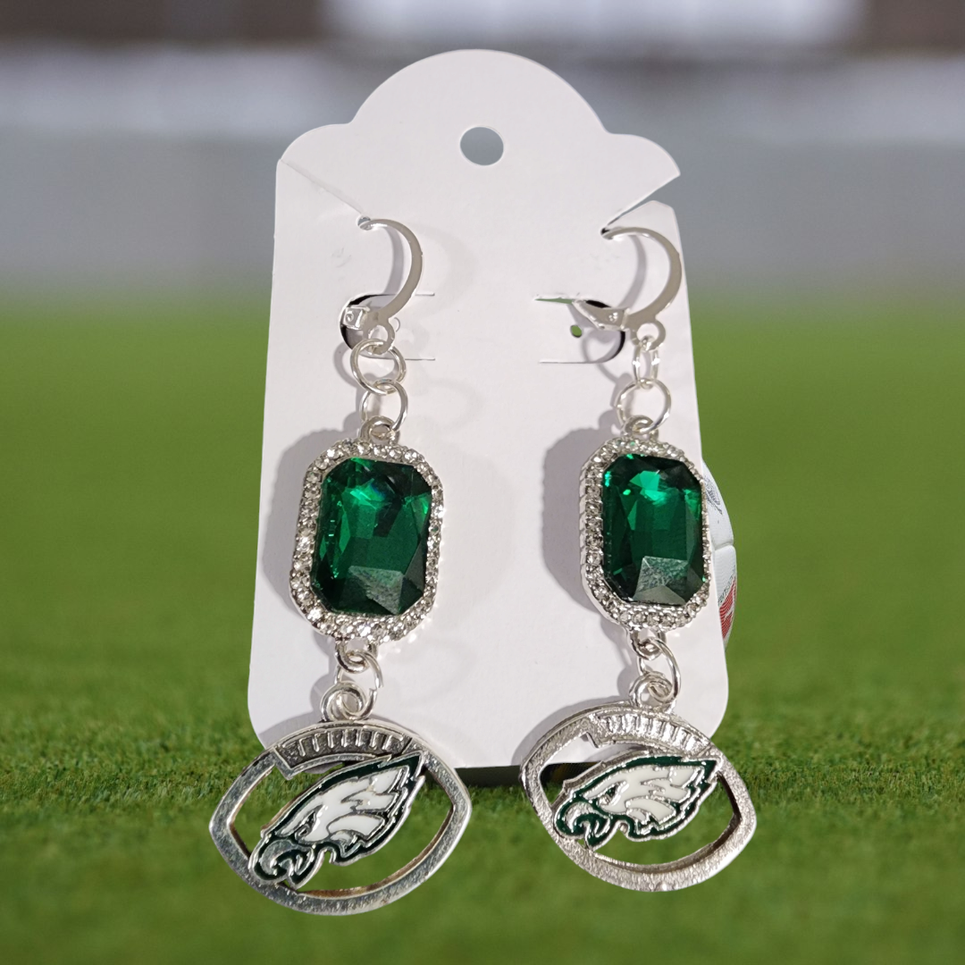 Unleash your wild side with our Eagles football earrings. Show off your daring spirit and love for the game with these bold statement pieces. Perfect for game day or any occasion, these earrings will elevate your style and show off your love for taking risks. Fly high with our Eagles earrings!🦅